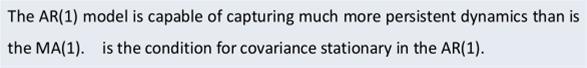 老师好\(^o^)/~ 见图中2句话,问: 第1句话中:是说,AR(1)在捕捉动态持续性上比MA(1)好?那什么叫,捕捉动态持续性啊? 第2句话:是在说什么意思?