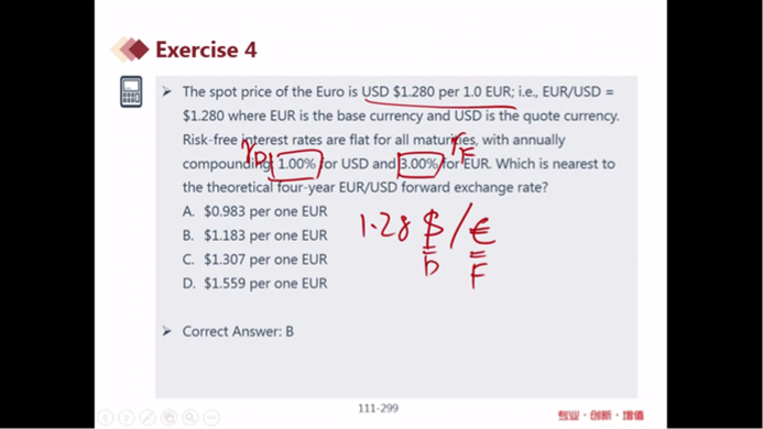 老师请问这个题目里面,前面说1.28美元每欧元,为什么后面又说了EUR/USD=1.28,不应该是USD/EUR=1.28吗