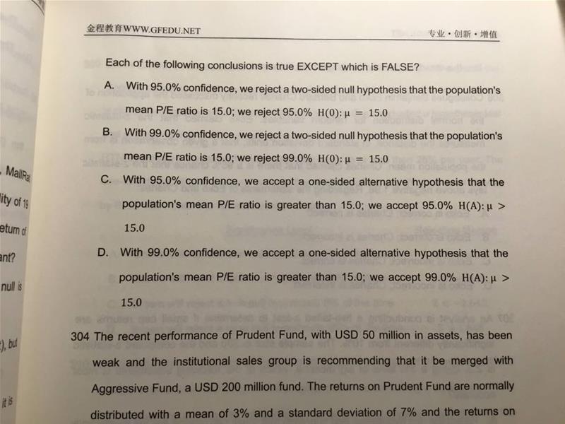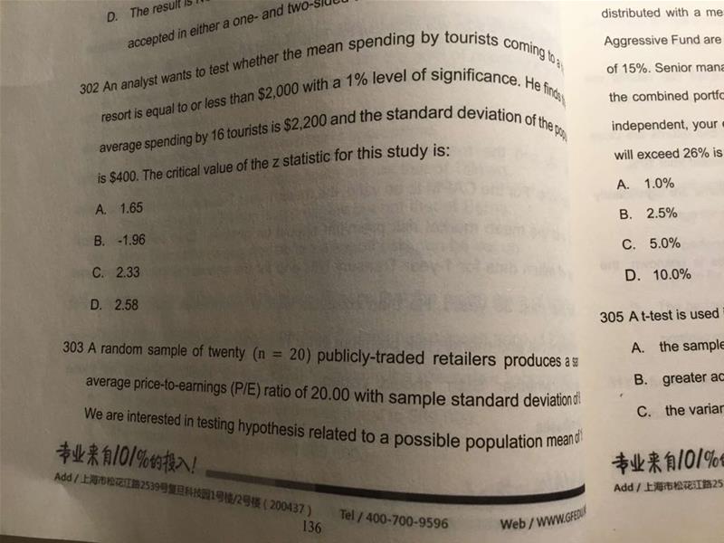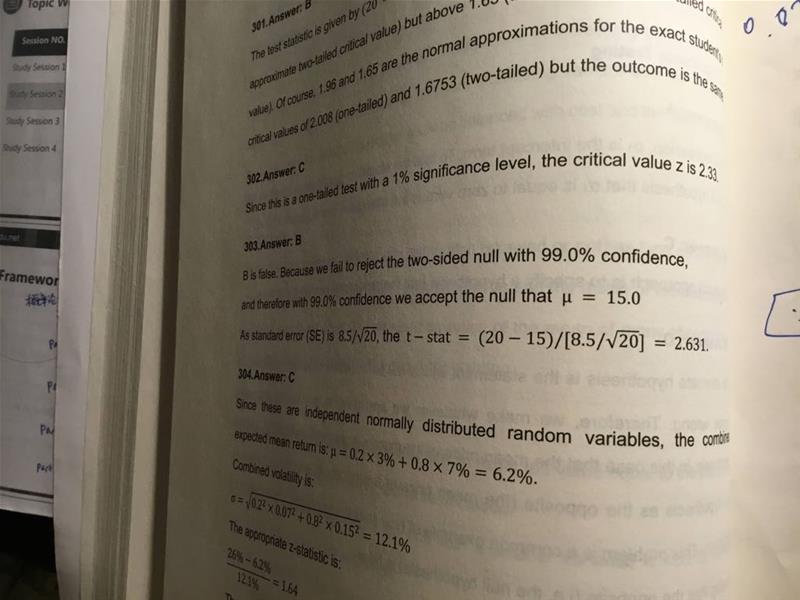 老师 303题为什么B是 fail to reject? T.S=2.631 > 2.58, 这不是应该是 reject 吗?