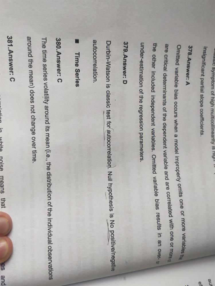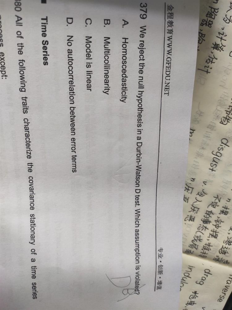 老师好,我问的是习题册上的第379题。 这个东西好陌生,我们讲过吗?Durbin-Watson D test这个是超纲了吗?这是个啥东西?