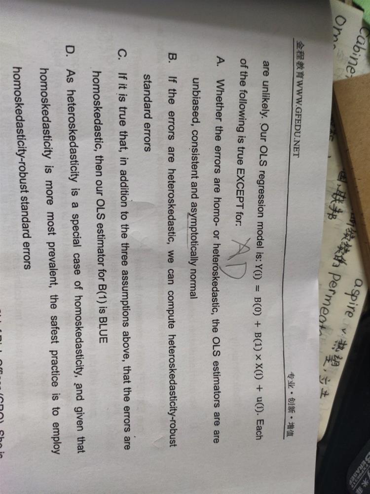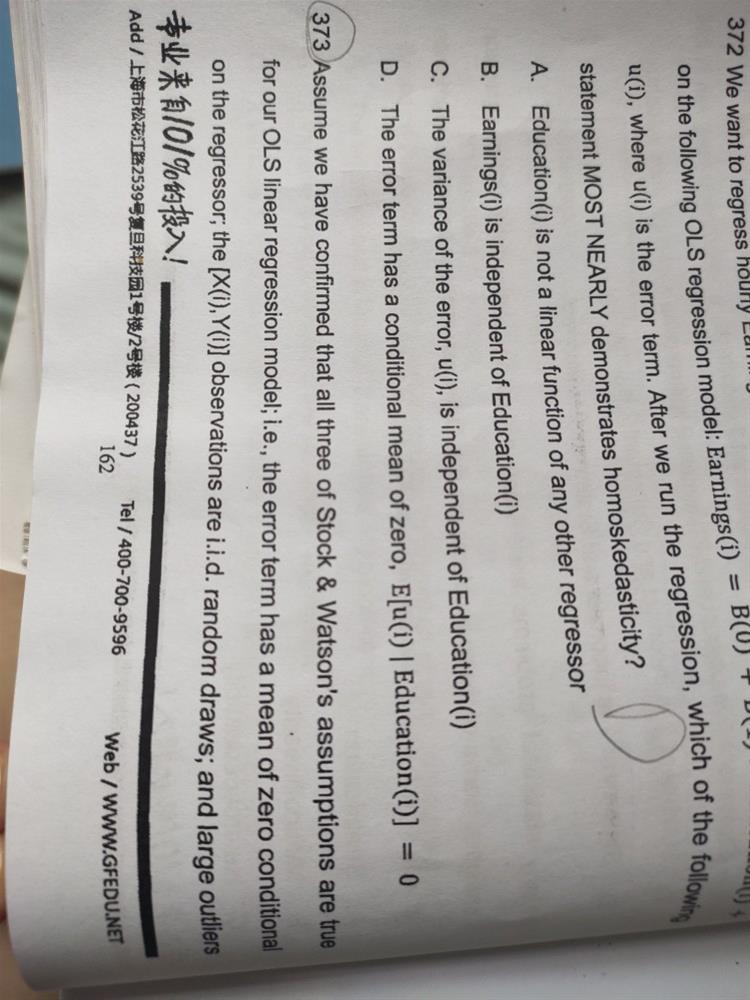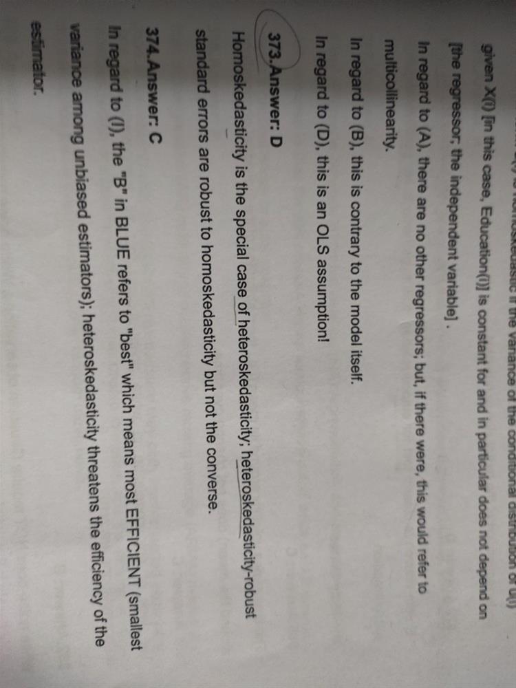 老师好,我做的是习题册的第373题,我看不懂这个D选项是什么意思,然后看了答案解析的D选项。我还是不明白。老师您解释下吧,最后再解释下同方差跟异方差的关系。谢谢老师了!!!😍