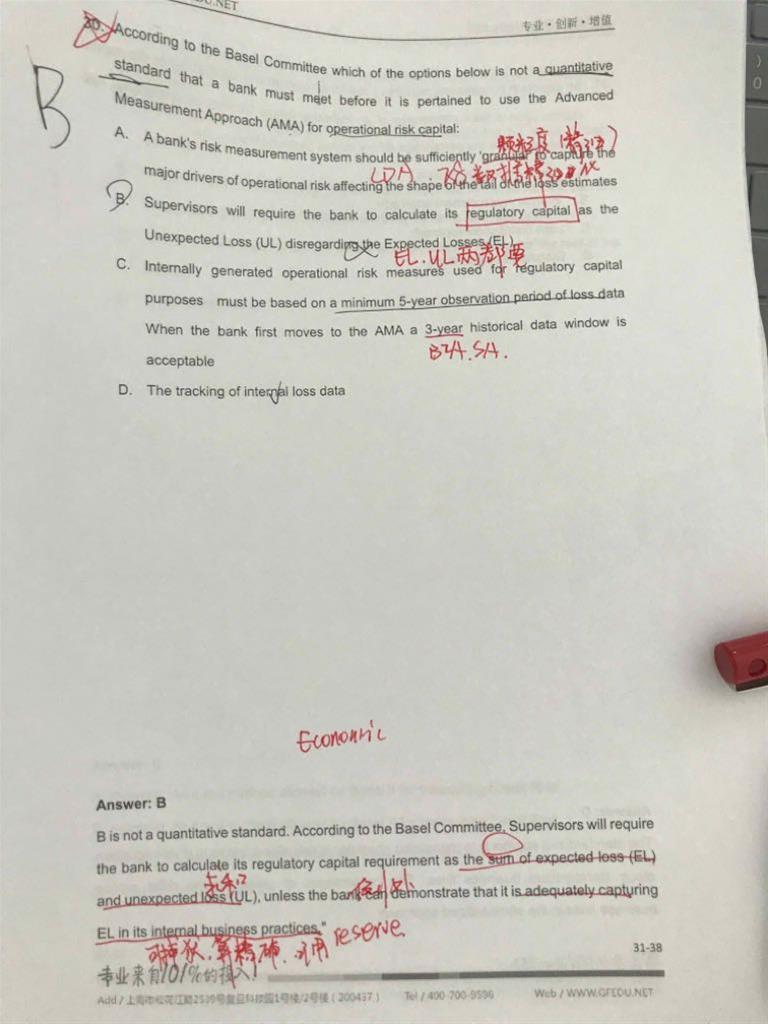 这一题说regularity capital是EL和UL求和 而我想到经济资本economic capital是WCL-EL 是单求UL的,这样一来的话 regular capital不就是比经济资本大吗 而事实上银行自己留存经济资本都是要高于巴塞尔协会规定的规章资本的