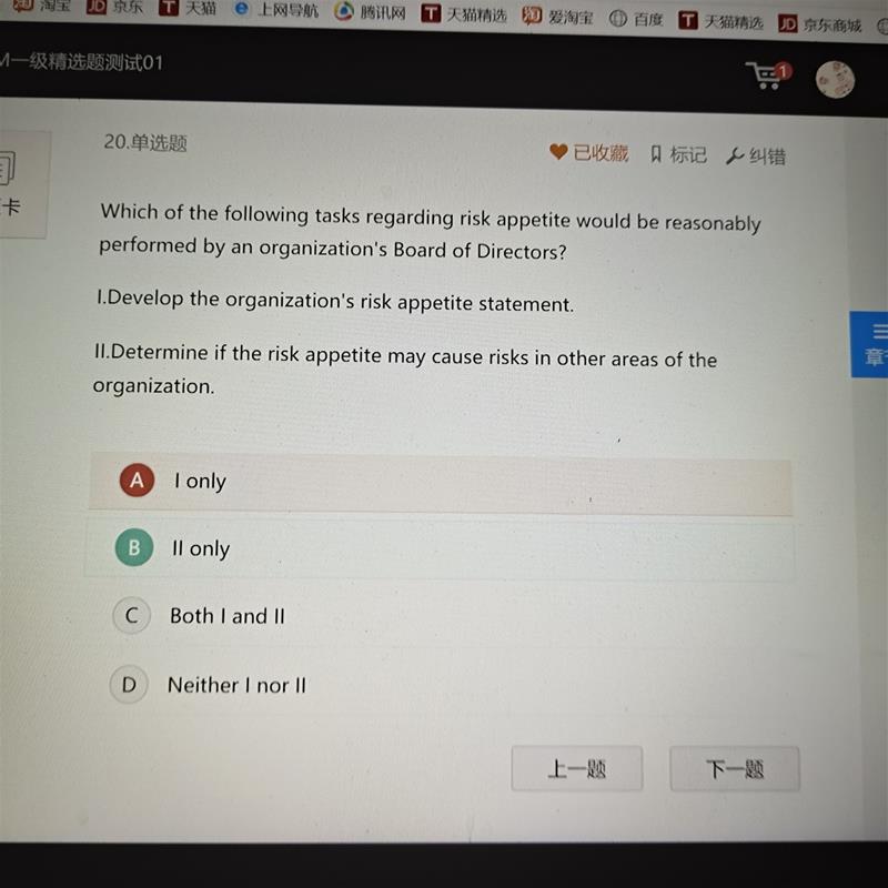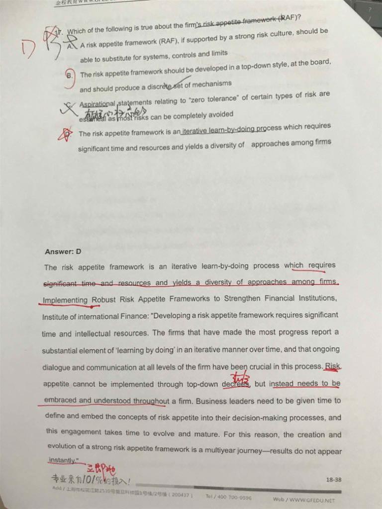 这一题对于B的答案解析没理解,为什么不可以是top—down过程 这个风险偏好架构不就是要先上级领导先组织架构好再贯彻到各业务部门