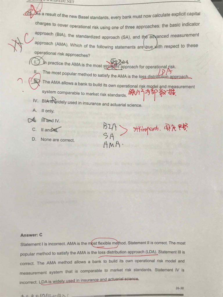 这一题精讲班老师讲题说第三个选项 AMA因为银行用自己的模型和内部数据,因此这个可比性不强,所以才会有后来的SMA 那么这一题他说是可以和市场风险标准比较,也就是有可比性 矛盾?