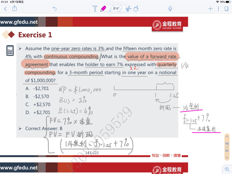 题目给的复利方式不一样,老师说先转换成一致的复利方式。不能折现用quarterly,算远期利率用连续复利吗?