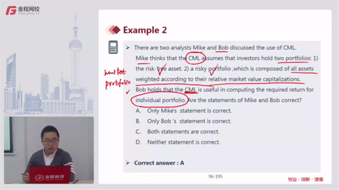 请问老师,为什么CML不可用于计算单一portfolio的收益呢?