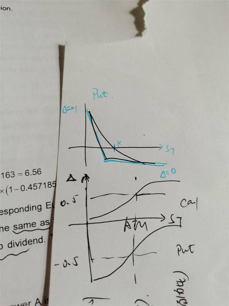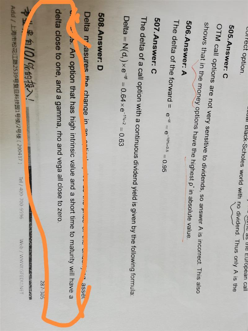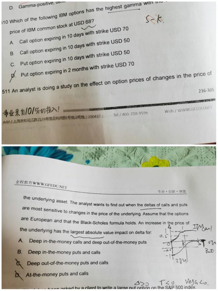 请老师解释一下画线这部分的意思,为什么说当内在价值最高并且离到期日越近的时候delta接近于1?比如说long put里面的delta,随着到期日越近是由-1到0啊,只有在ATM时候delta的斜率最大,但是此刻并不是内在价值最大,还有时间价值啊 511也是这个问题,为什么不是选A呢 面对这种题是应该观察图像中delta的数值还是delta的斜率?