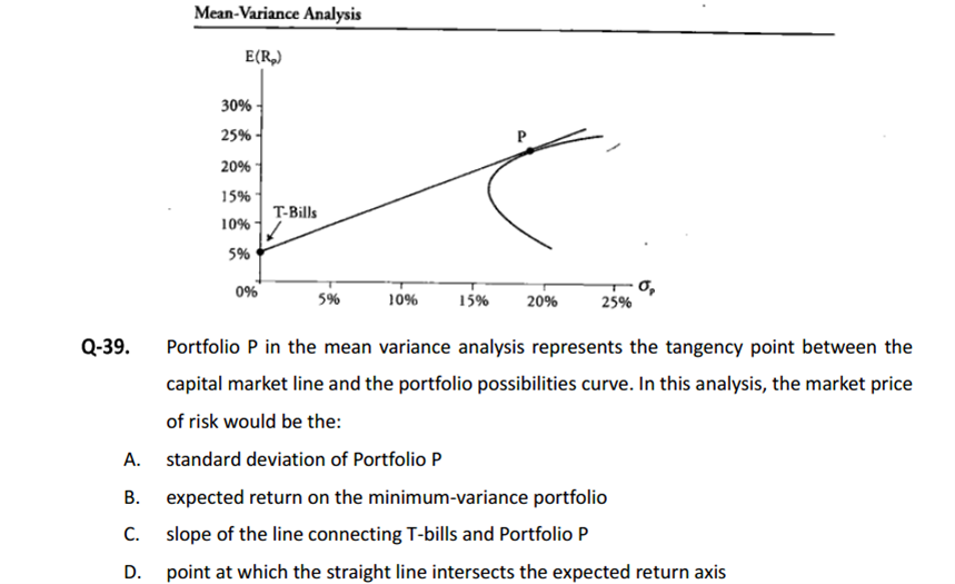 问: 1、题目中“market price of risk”是指什么? 2、“market price of risk”为啥就是CML线的斜率啊?有什么道理啊? 3、D选项在说什么意思?