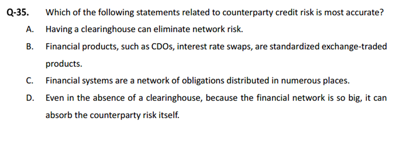 风险管理基础,百题,第二个视频,42:18-42:24,说,交易所交易的产品没有交易对手方的信用风险,这样说,对吗?