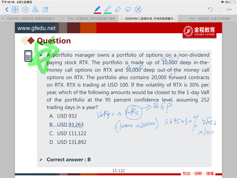 这一道题目,为什么会涉及到delta,不是说delta是衍生品价格的变动和标的资产的变动的比率吗。 这里是两个VAR值,怎么涉及到Delta,我一级里面找不到这个知识点,是在哪一章