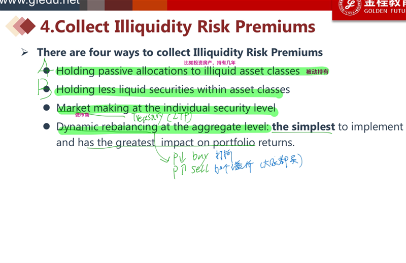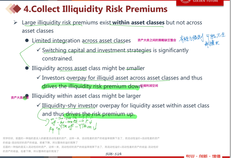 前张ppt说第二种方法是在资产大类之内部买入流动性差的资产less liquidity 而后者ppt的第三点说是在资产大类内部由于买入流动性好的资产而风险溢价提升。 两者矛盾。