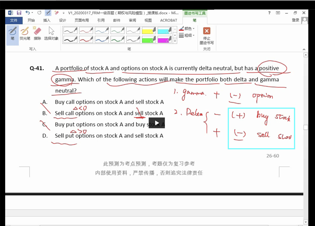 老师,第41题,为什么引入负的delta就是要卖出标的物,引入正的delta就是买入标的物呢?