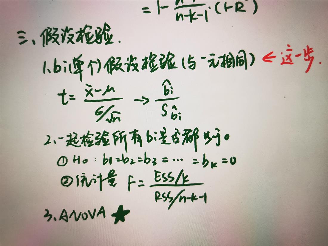 请问老师,这里的假设检验第一步:“bi单个假设检验(与一元相同)”这个步骤要把b1 b2 b3……bi每一个都要检验一遍吗?