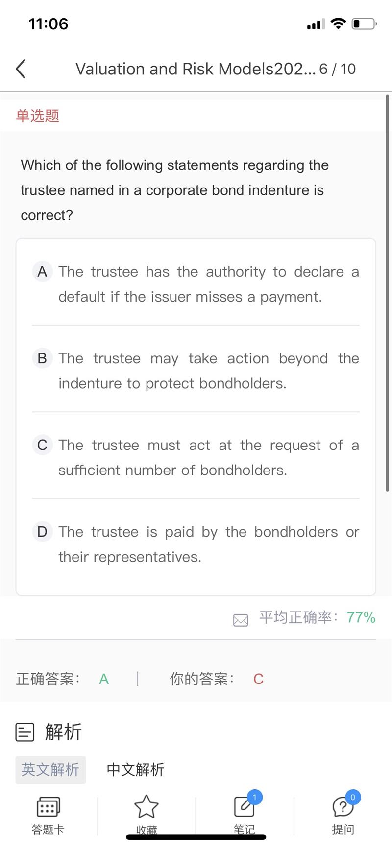 已回答Trustees can only perform the actions indicated in the indenture, but are typically under no obligation to exercise the powers granted by the indenture even at the request of bondholders. 老师请问这句话什么意思