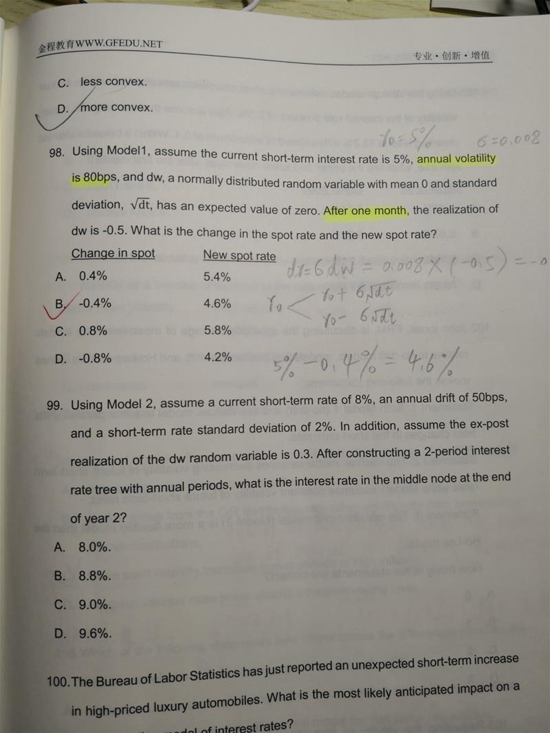 老师,98题的波动率不用转换么,一个是年化的,但是利率变动求的是一个月的。