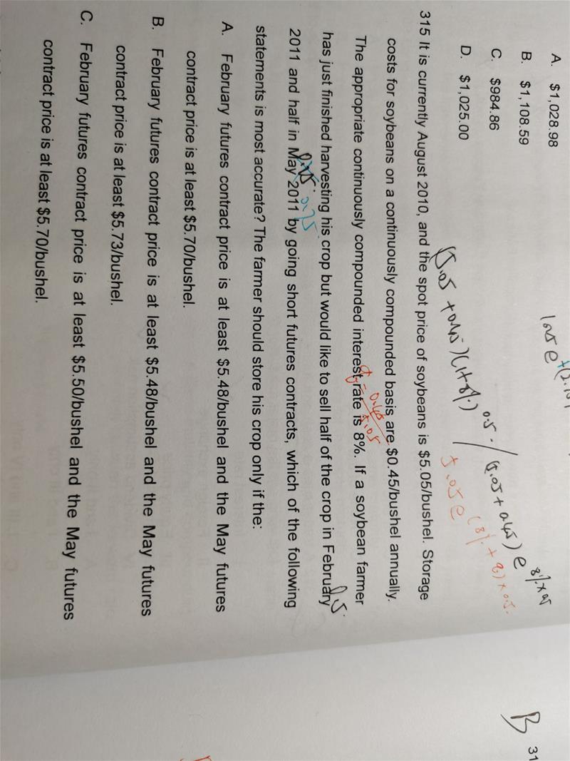 请老师说一下315题,为什么我用黑笔写的这个公式算出来的答案不对?就是在S0上面加上成本啊,如果是红利是用金钱表示的,和这个算法不应该是一样的吗?只不过用的是S0-D
