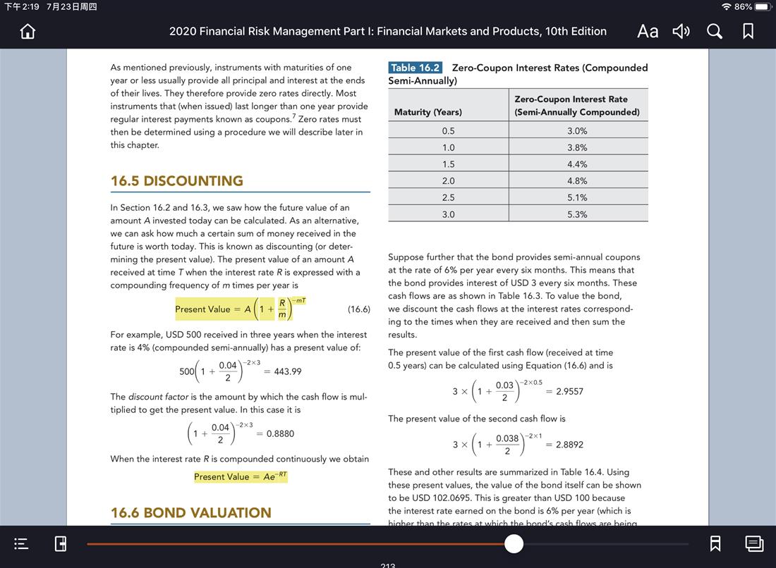 老师你好 这边想请教下 原版书上的半年复利折现 3*(1+0.03/2)^(-2*0.5) 和之前上课的时候提到的复利折现3*(1+0.03)^0.5 有什么区别呢?之前老师上课提到的复利折现都是除以(1+r)^t