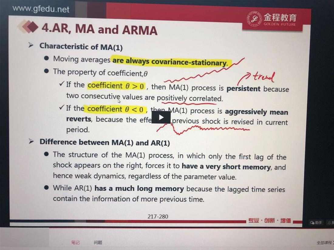 如果sita大于0,呈现trend,这不是就不符合协方差平稳了吗?