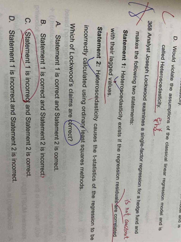 能分析一下statement 1的regression residuals are correlated with their lagged values 是什么意思吗