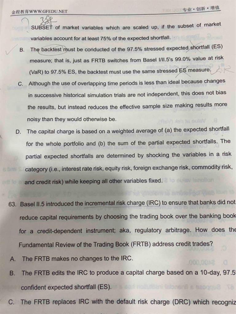老师这道题不是选择错误的吗?B选项不是不对ES做回测吗?为什么之前的解释说ACD都与FRTB无关?