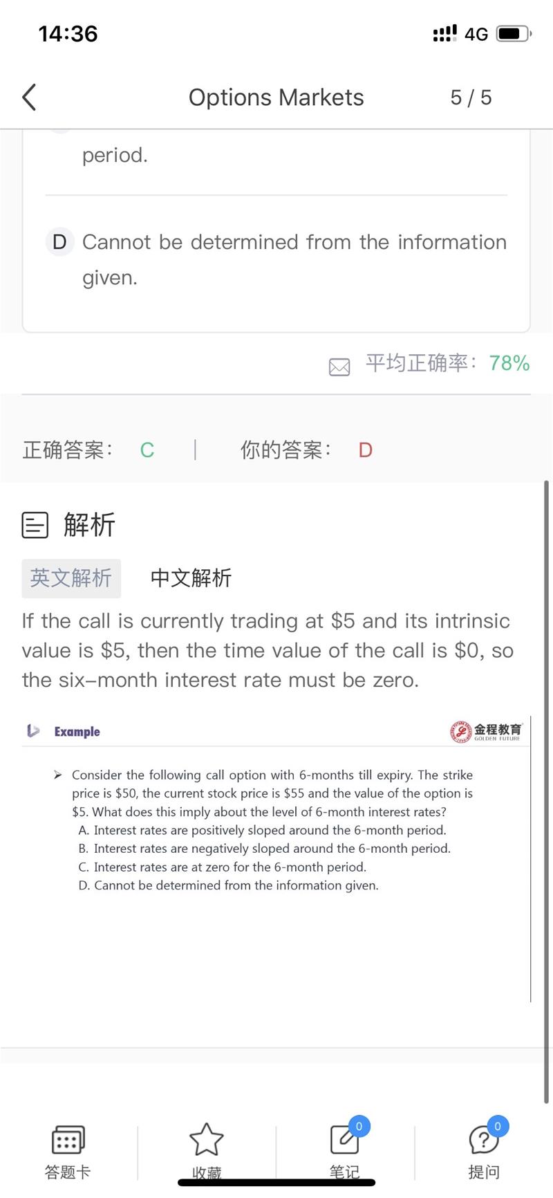 因为call内在价值=S0-K=55-50 premium=内在价值+时间价值=5 所以时间价值=0?那为什么rf就等于0呢?就算这个时间点的rf=0,就能判断rf的斜率为0了呢?