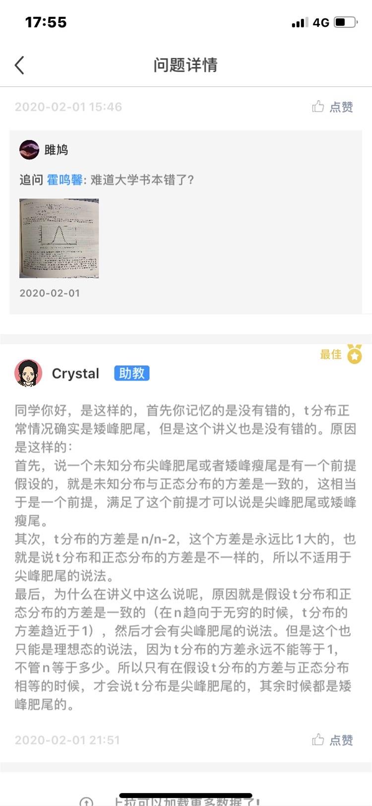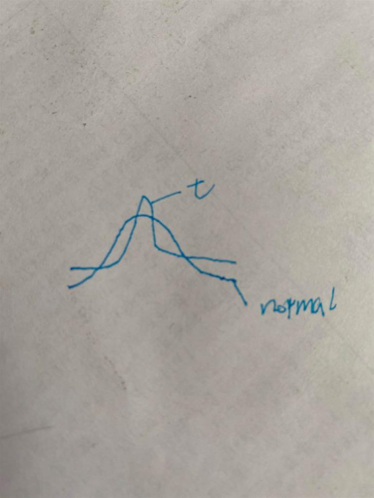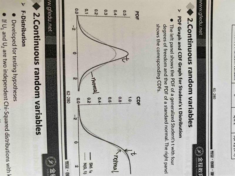 根据老师上次解释:当T分布和正态分布方差一样的时候,他是尖峰肥尾,其他时候是矮峰肥尾。但是书上这个图画的都是瘦尾呀,正态分布的尾巴,反而比他更肥。请问到底这个尾巴是不是有问题?是应该像我画的涂山一样吗?还有C D F这个图到底画的正确吗?