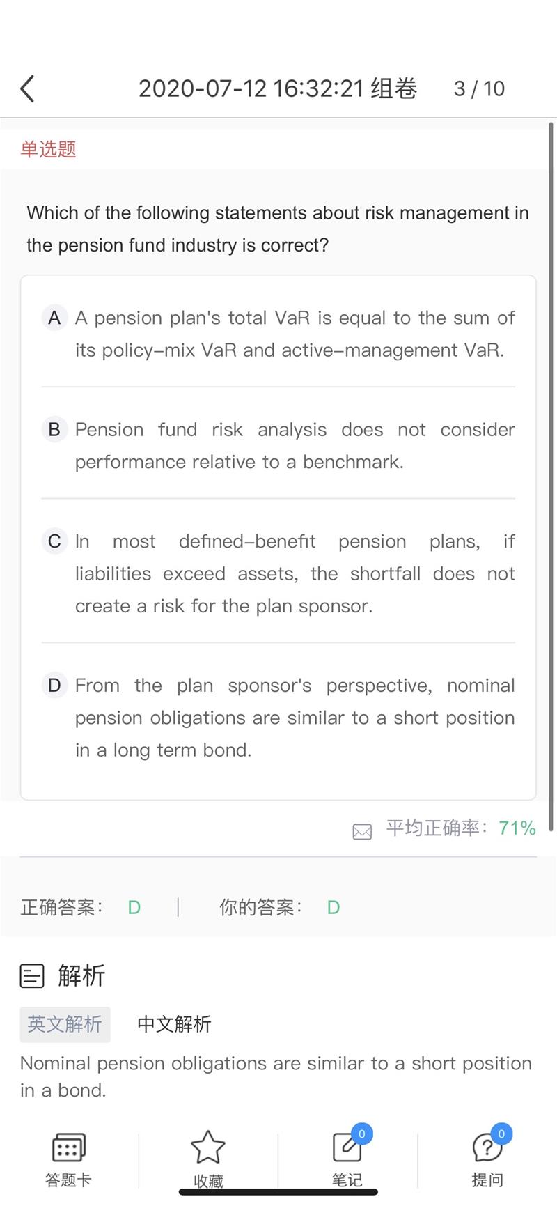 老师好、这道题D选项,sponsor是发起者就是员工自己吧,他们退休后每年拿到一笔钱,这不是相当于买了一个长期债券吗,应该是long吧?