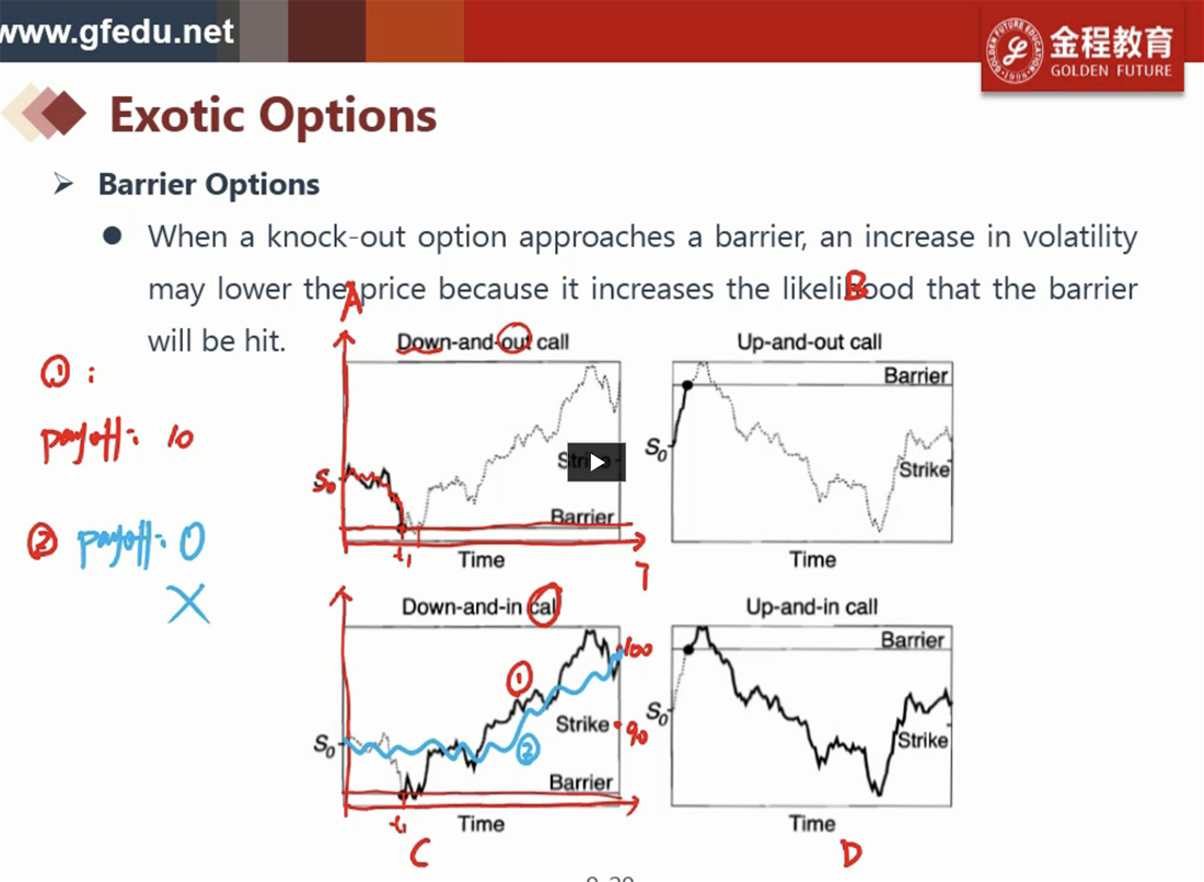 老师,第9页,蓝色的这条二号路径我有疑问,s>障碍价格,又是down-and-in,是敲入,为什么老师说没有买入?难道是都要相等吗?老师之前是讲大于小于的,没有讲完全等于,谢谢。