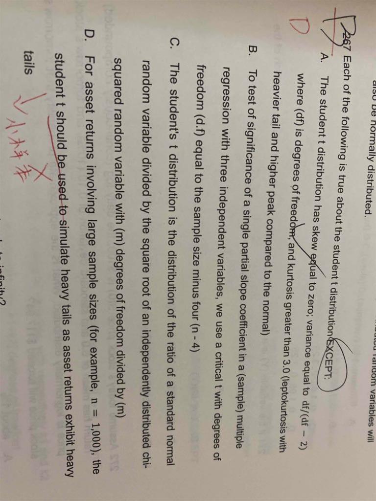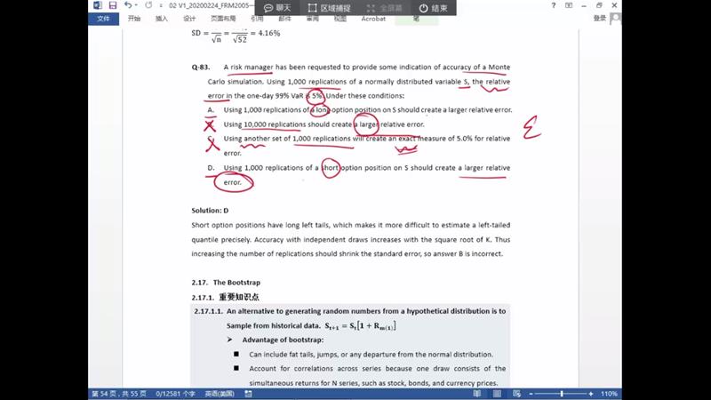 D选项老师说是因为short option的左尾较厚,实际损失较大,monte Carlo 预测误差大,但A选项的 long option 右尾厚,实际收益也可能较大,那Monte Carlo预测的误差也大啊,那A选项也应该正确吧
