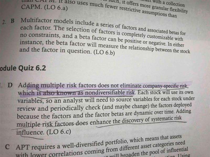 请问老师画蓝线的这句怎么理解?不是说company specific risk是可以消除的吗?有点矛盾。但是有一点我理解是再多的与公司层面无关的风险因子是无法捕捉到公司层面的风险的。