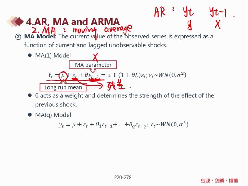 老师,这里的ma模型中μ你说的是常数,确切一点说是不是就是时间序列的均值?