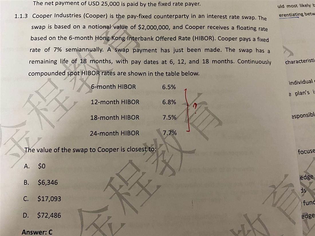 老师,这题讲解下,完全没思路。不知道什么时候用7% 什么时候用LIBOR