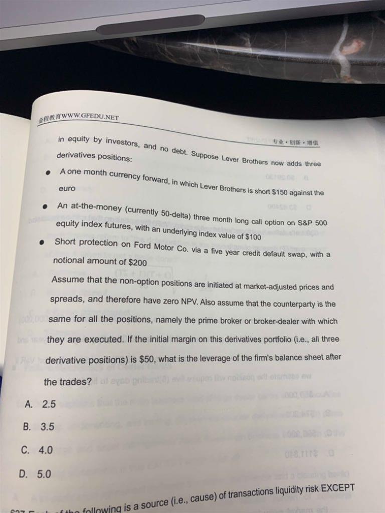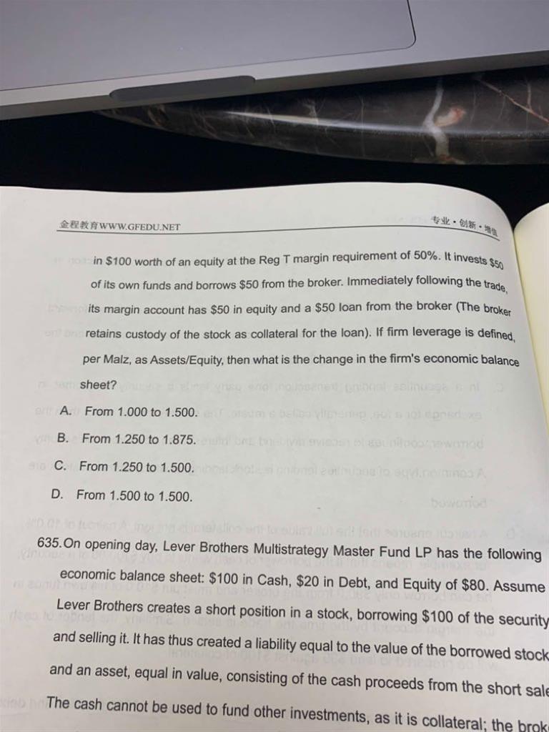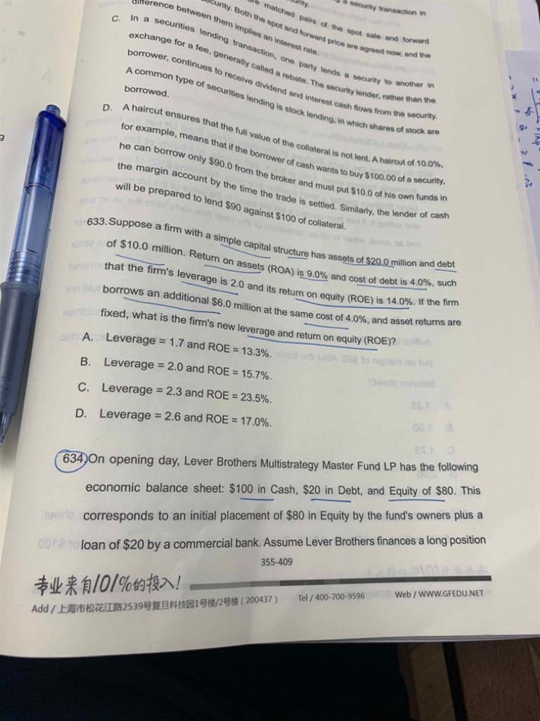 习题634: 老师好,这道题,“this correspond to an initial placement of $80 in equity by the fund’s owner plus a loan of $20 by a commercial bank ”是什么意思呢,这个不用计算在leverage的计算里吗