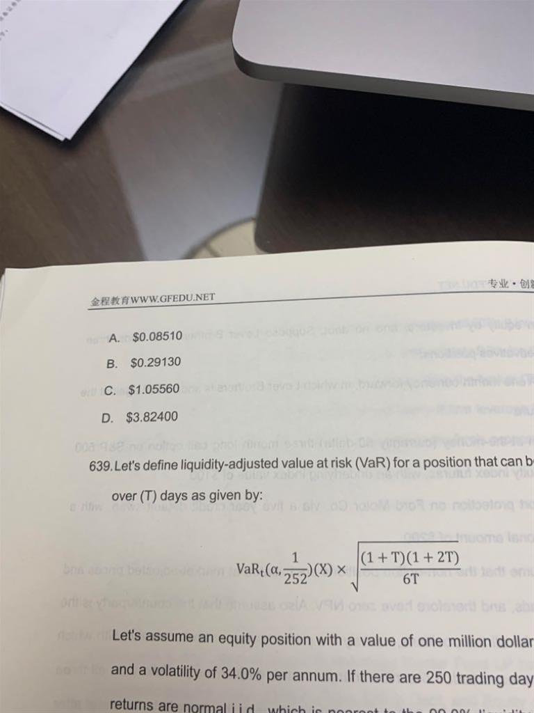 这道题的交割金额除以1+4.5%*0.25年,而没有开根号0.25年折现,是不是因为是计算价格,所以不需要折现,而计算价值value才需要对金额按照利率进行时间跨度的折现?