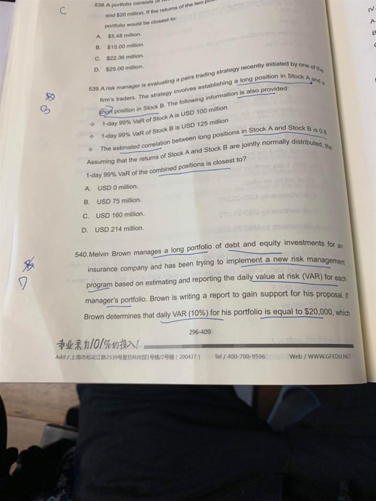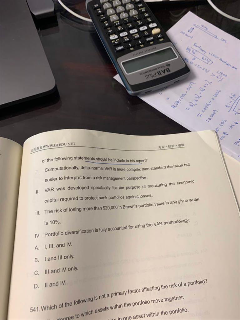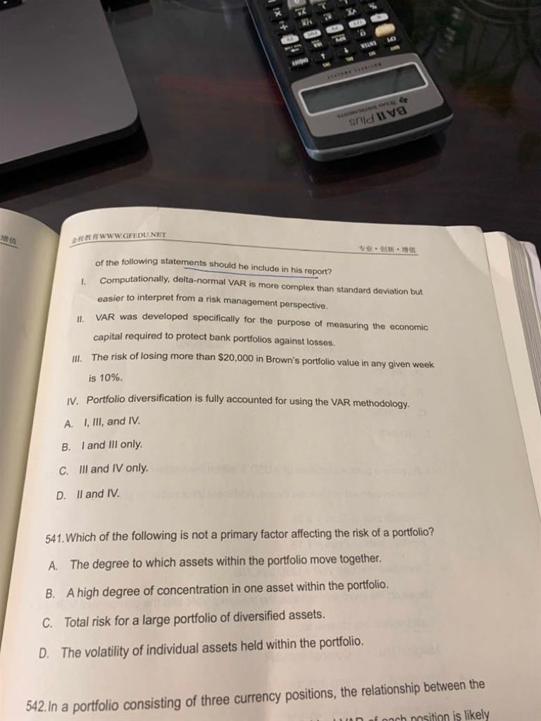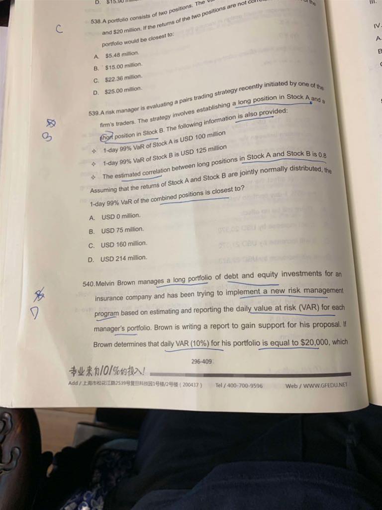 习题540:老师好,这道题,III为什么不对呢,daily var(10%)=20000,不是表示一天当中损失大于20000的概率是10%吗?