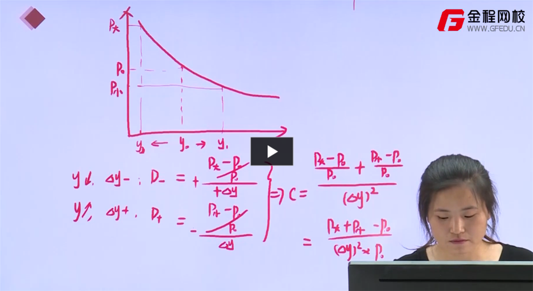 老师关于这个有效 convexity的推导有两个地方十分不明。1. convexity 是两个 久期只差除以两个久期之间y的差,那就应该是y1-y2, 这里看图像无论怎么看都是 两个 delta Y, 可是公式中分母部分却只有一个delta Y,y1-y2 假设是一个delta,那么两个单独的久期中的分母就应该是 1/2 delta Y,否者久期的公式如何能够放入 convexity的公式中呢,因为这两个公式里面分布的 delta Y代表的长度都不一样。2. 图中最后老师写的公式分子部分,是-P0,是不是写错了,应该是-2P0?