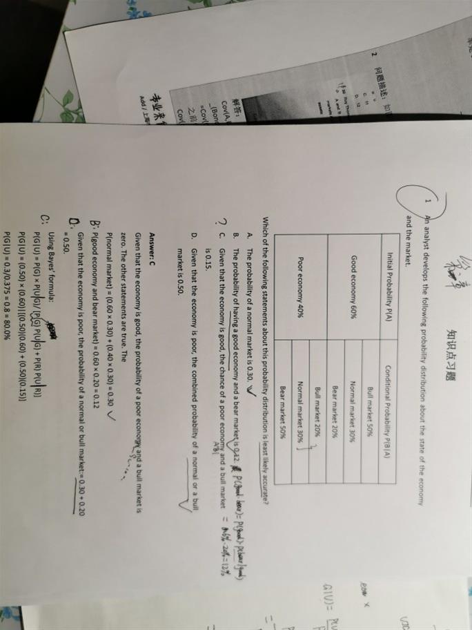 这个题的C到底表达什么意思,为什么给定好的经济,又要求发生坏经济的概率,而且解析也没看明白