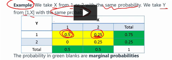老师好,这题视频说黄色部分是联合概率,但是我也可以理解为条件概率吧?在X=1的情况下,y=多少?