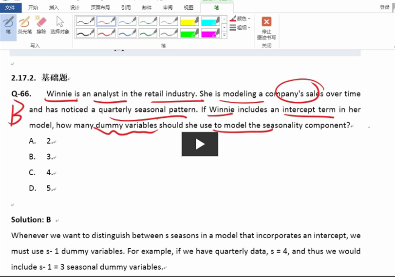 请问 这里可否理解为:哑变量的个数与截距和残差都无关,就是看与X相关的个数,因为是季节性是四季 所以4-1?。但是多重共线性的定义是:X与X之间高度相关,X与截距相关也是多重共线性的一种。那么请问这里为什么不是4+1(就是四季加一个截距)再减一呢? 求解多谢