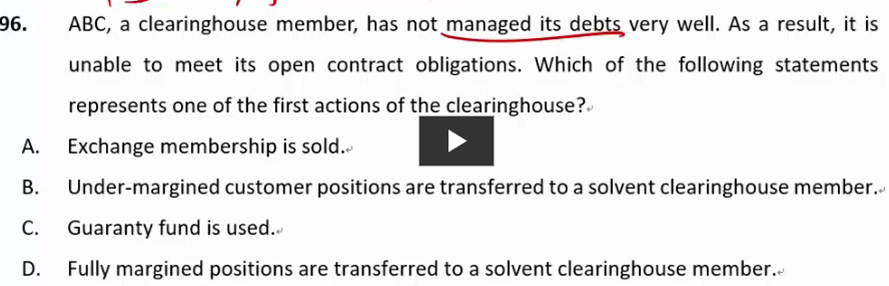 老师您好,这道题为什么不选C,guaranty fund不就是member在期初交的一笔钱吗,当该member违约时,清算所会先动用这笔钱去还债?