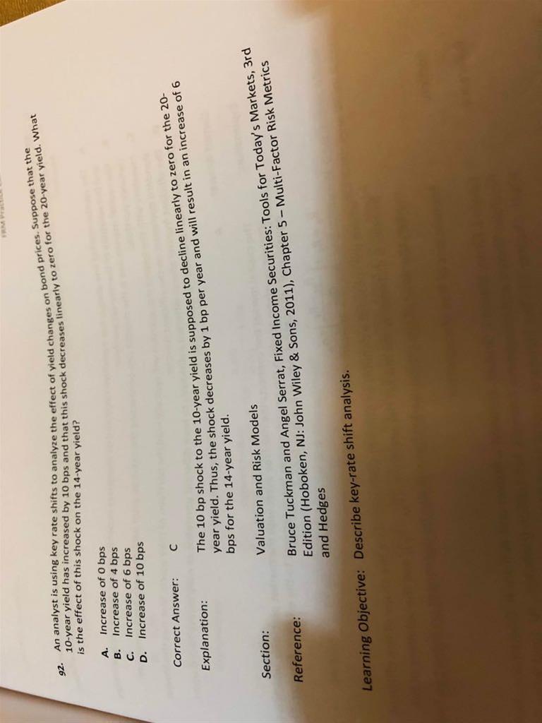 老师,92题为什么选C,利率关键影响不是平行的吗?应该是10bp吧。