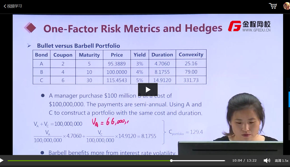 已回答老师,这里题目里说Using A and C to contruct a portfolio with the same cost and duration,这里的duration是指A+C的组合的久期跟B的久期是一致的意思吗?