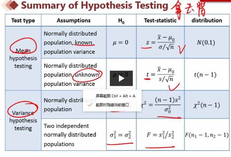 请问如图 最后一个纵列第一行N(0,1)但是2 3 4 行都是n-1, 请问z分布的自由度是否也是n-1? distribution这一纵列都是在说自由对对吧?谢谢