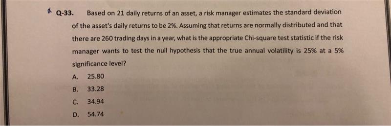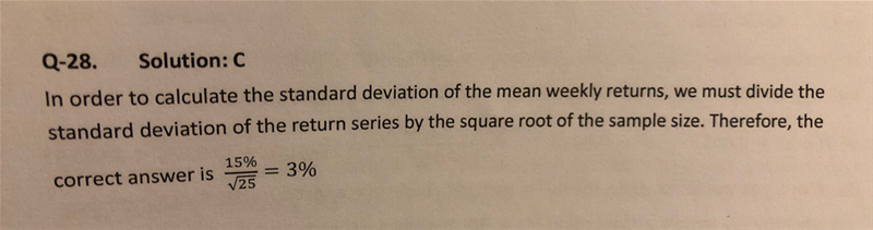 老師,請問一下第28條跟33條 q.28 是除以 開方25去計weekly 那麼為什麼 q.33 是乘以開方260去annualise 呢?