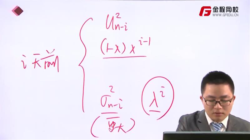 Un-i平方的系数里,纳姆达不是有个求和的过程吗?为什么带入i天前没有求和?直接是纳姆达的i-1次方?