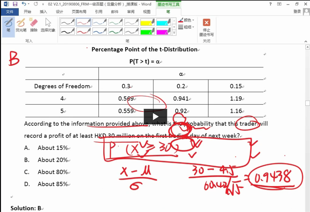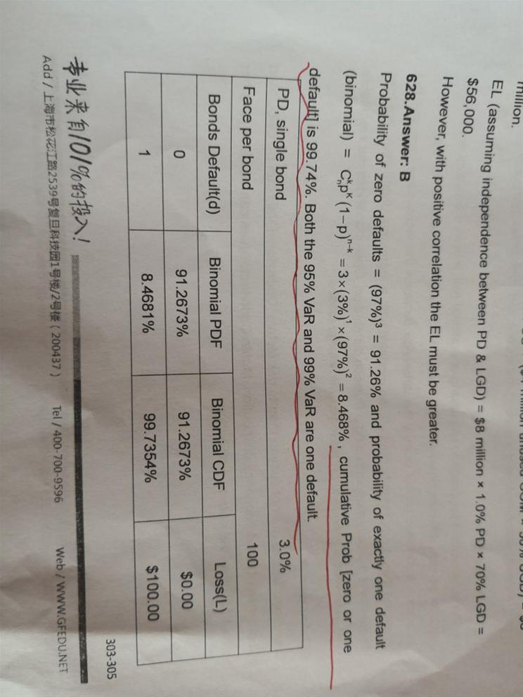 628题答案没看懂,分别计算累计概率看懂了,但没看懂画红线的部分,为什么选B,谢谢。