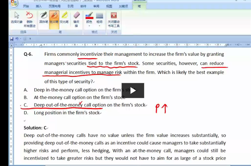 听讲解说这道题 用c激励CEO是好的 但是CFO是不好的。 但是题干并没有提及是风险管理者的激励 只说是管理者。请问为什么会理解成是激励CFO不好于是就选c了呢