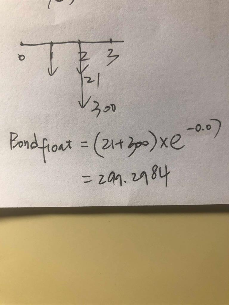 计算浮动bond value的时候,用第二年末的现金流折现,计算结果为甚么不等于300?