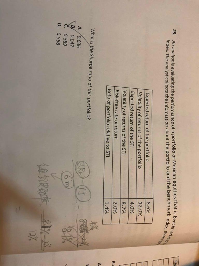 老师,这道题为什么除以组合的波动率而不是市场组合指数的波动率,和夏普比例的公式不一致呀?为什么呀?