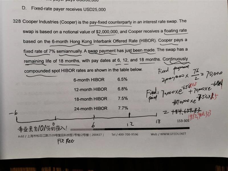 这个题是不是有问题啊,为什么floating的部分的价值只有2000000,而不计算浮动利息?一般题目中都会给到上一付息日的libor才能计算当期包含浮动利息?